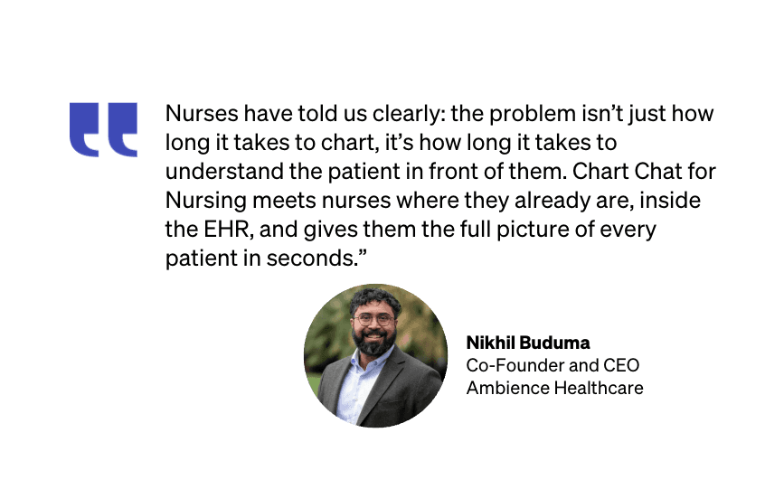 And we’re grateful to build that future in close partnership with the Ambience Nursing Council and health systems like Cleveland Clinic, whose frontline feedback shapes every step of our roadmap and the evolution of nursing AI.